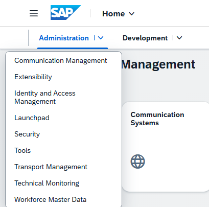 Instead, the separate components of our solution communicate using RESTFul HTTP APIs, allowing the components to live and interact from decentralized locations completely remote from our core logic, and yet still operate as one distributed solution. Remote communication, however, adds an additional layer of complexity to our solution, since we now must maintain credentials, authentication protocols, etc. Fortunately, SAP provides an elegant solution to this problem for our cloud components in the form of Communication Scenarios/Communication Arrangements. We will explain how and where to configure these artifacts later. For reasons that will be clear shortly, we will first log into our BTP ABAP environment and configure the basic details of our solution.