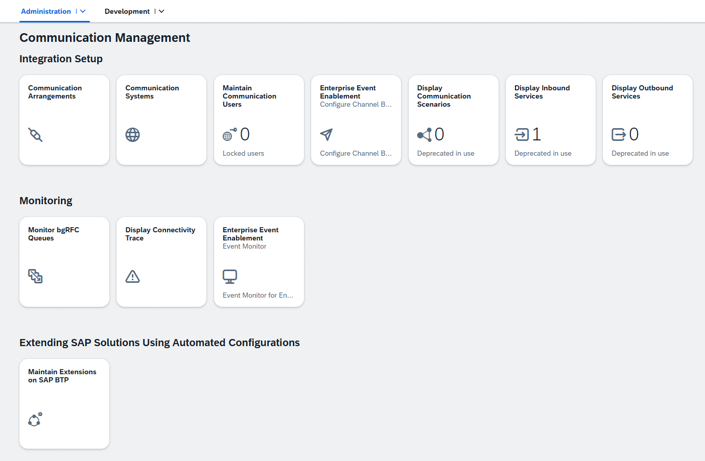 However, since we are connecting to an on-premise system, we require a different approach. Instead, our on-premise backend system needs to be connected using a Cloud Connector and by creating a Destination in our BTP Cockpit pointing to this system. The purpose of the Cloud Connector is implied by its name. The Destination registration serves the same purpose as registering a Communication system, which is to store credentials and authentication methods for this particular system. Configuration of these two steps is beyond the scope of this blog, but below is an SAP guide outlining how to do both: