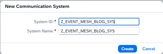Communication System: The Communication System artifact contains all of the information required to connect to an external system. This includes URIs, information authentication protocols and credentials, the type of system, etc. Note that his does not necessarily need to be a physical system. It can cloud applications like the Integration Suite or, in this case, the Event Mesh instance where our Queues reside.