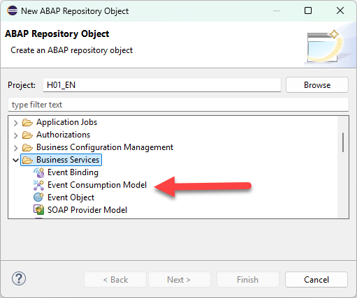 Logging into our Eclipse IDE system and connecting to our ABAP BTP repository, it might feel a bit daunting trying to determine our next step. We understand that we have an Event Mesh instance out there somewhere, but the question now becomes how do we connect to this instance, listen for only our particular event, and then react to this event be executing some custom code.