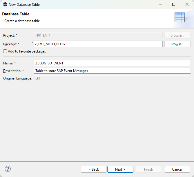 As a very quick, final step of handling our received events, we would like to store these events in a database table before we start processing them. To do this, we will create a table with a simple structure matching our message structure, and immediately populate this table upon receiving a message using the code below: