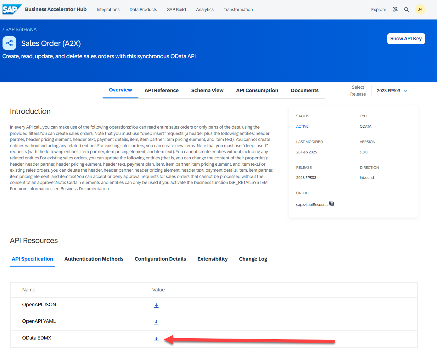 Download the metadata file from the SAP Business Accelerator Hub. SAP will often offer two different types of interfaces: