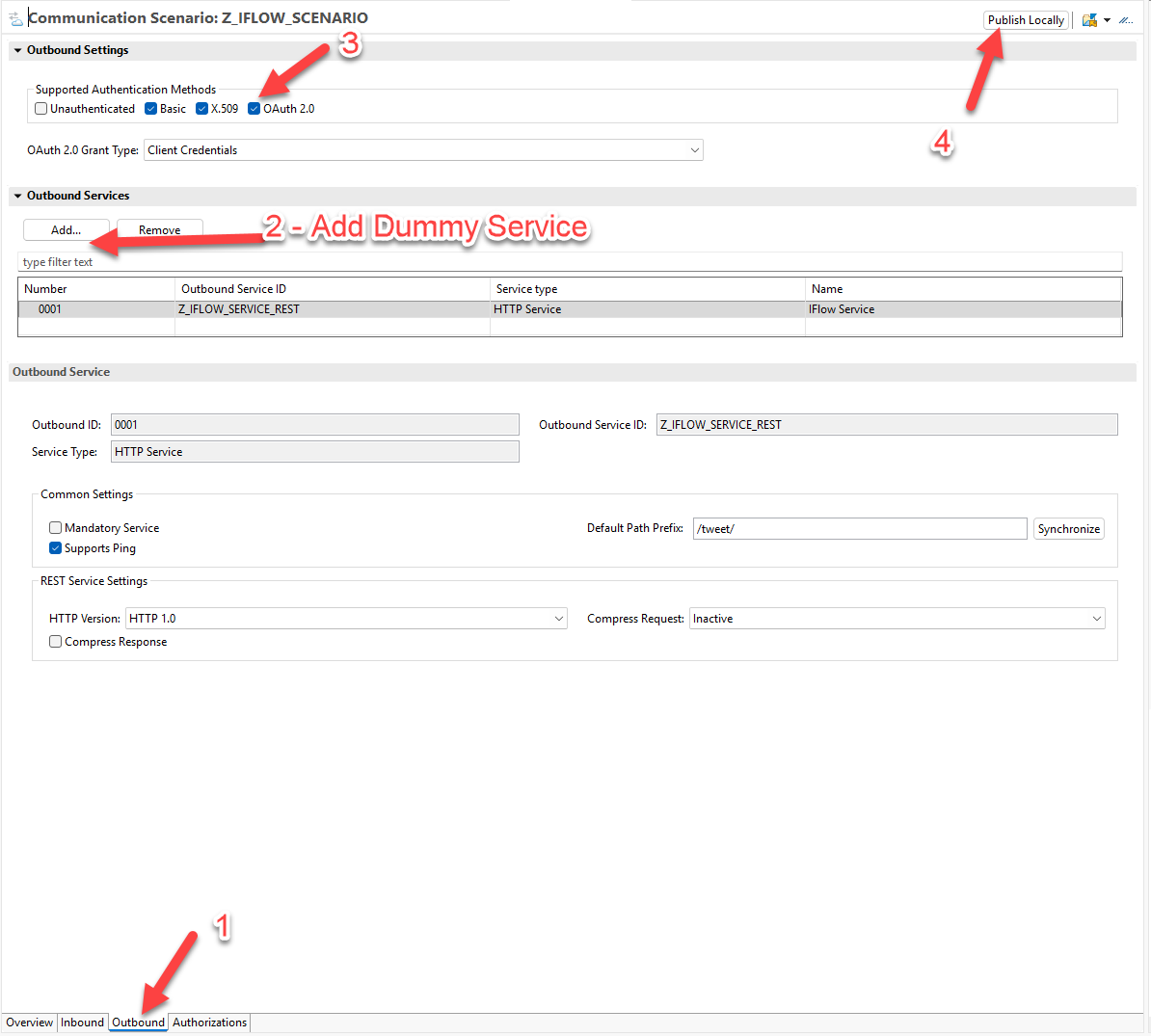 Take note of which artifact is connecting what layer. Our Communication system gets us to Integration Suite instance, and can be reused for any other interfaces we would like to connect to this system. Our Outbound Service adds the URI addition of “/http/”, which allows us to reference a subset of possible Integration Suite endpoints that use HTTP protocol. The last piece of our URI, the “tweet” portion, can then be added directly from our code, as we shall see shortly.