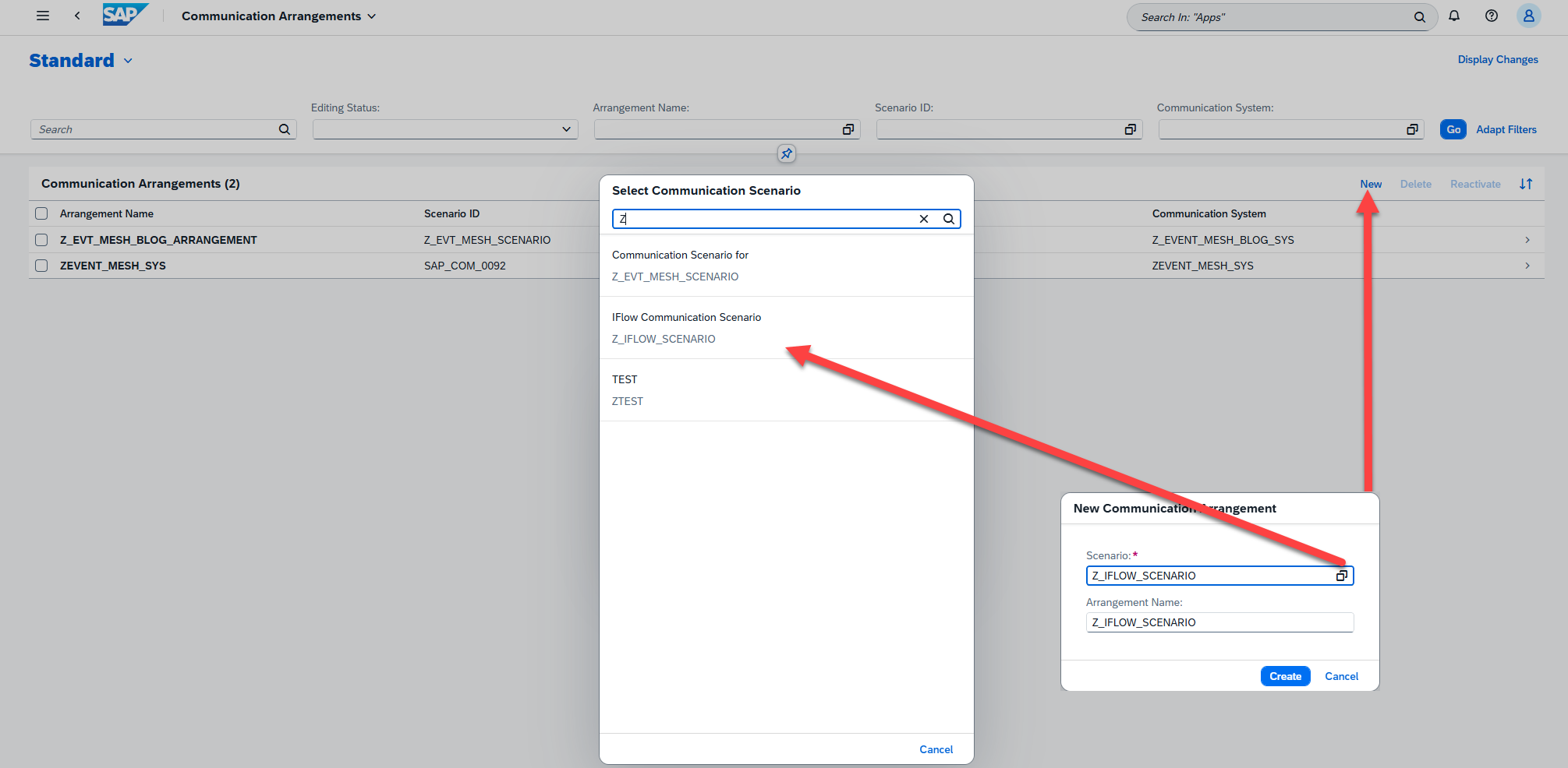 Now that our Communication Scenario is published, we will follow steps to create a Communication Arrangement, which include creating and specifying a Communication System (our Integration Suite system), along with a Communication User (which is an abstract way to store our credentials that we extract from our Service Key. Since we have already covered this process for the most part in the previous blogs, I will explain this portion through a series of screenshots. The process is mostly simple and straightforward, however if you run into trouble feel free to visit the previous blog for more detailed steps: