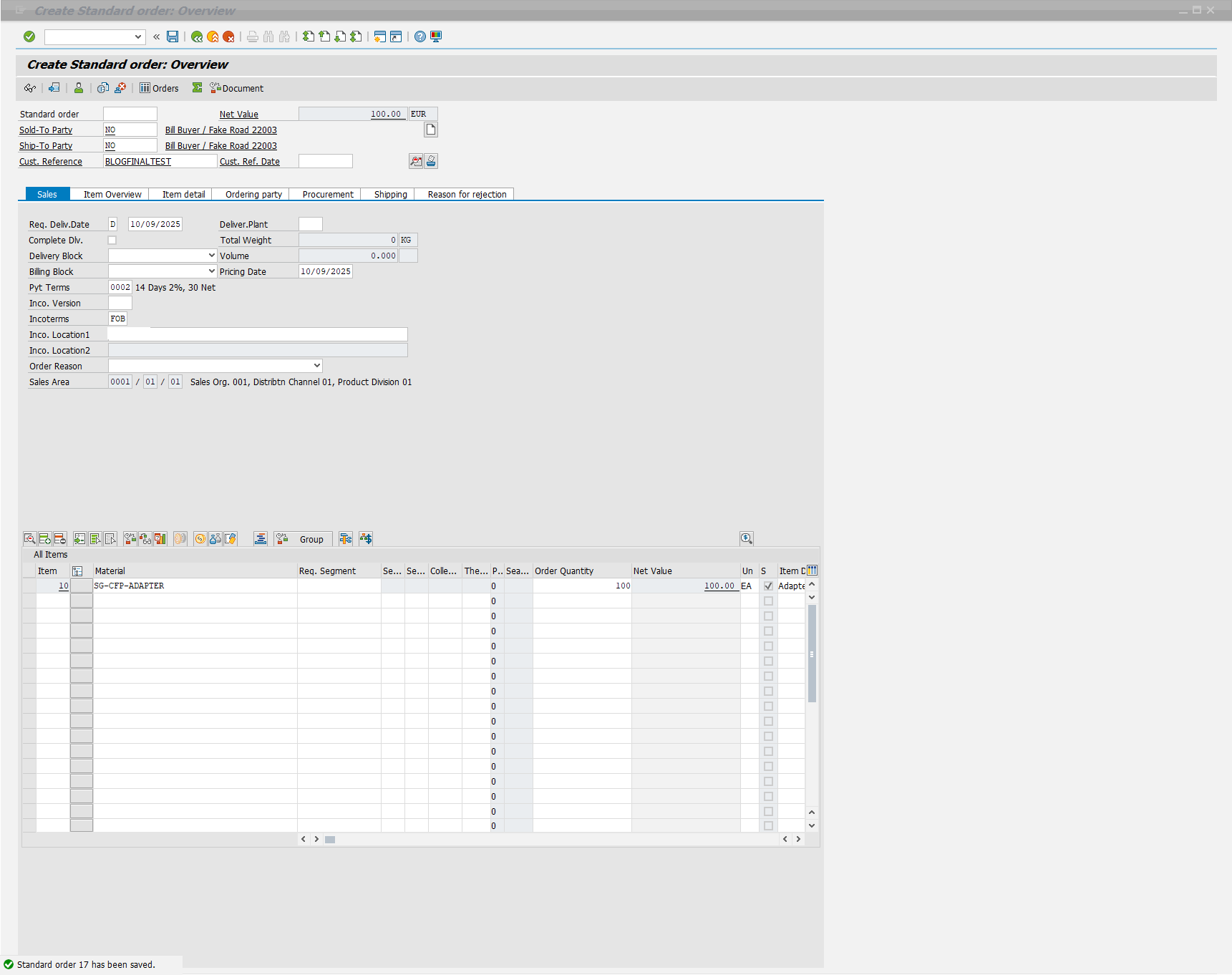 - The final option, which is the most rewarding, is to simply create a new Sales Order in VA01 to ensure everything is working from end-to-end