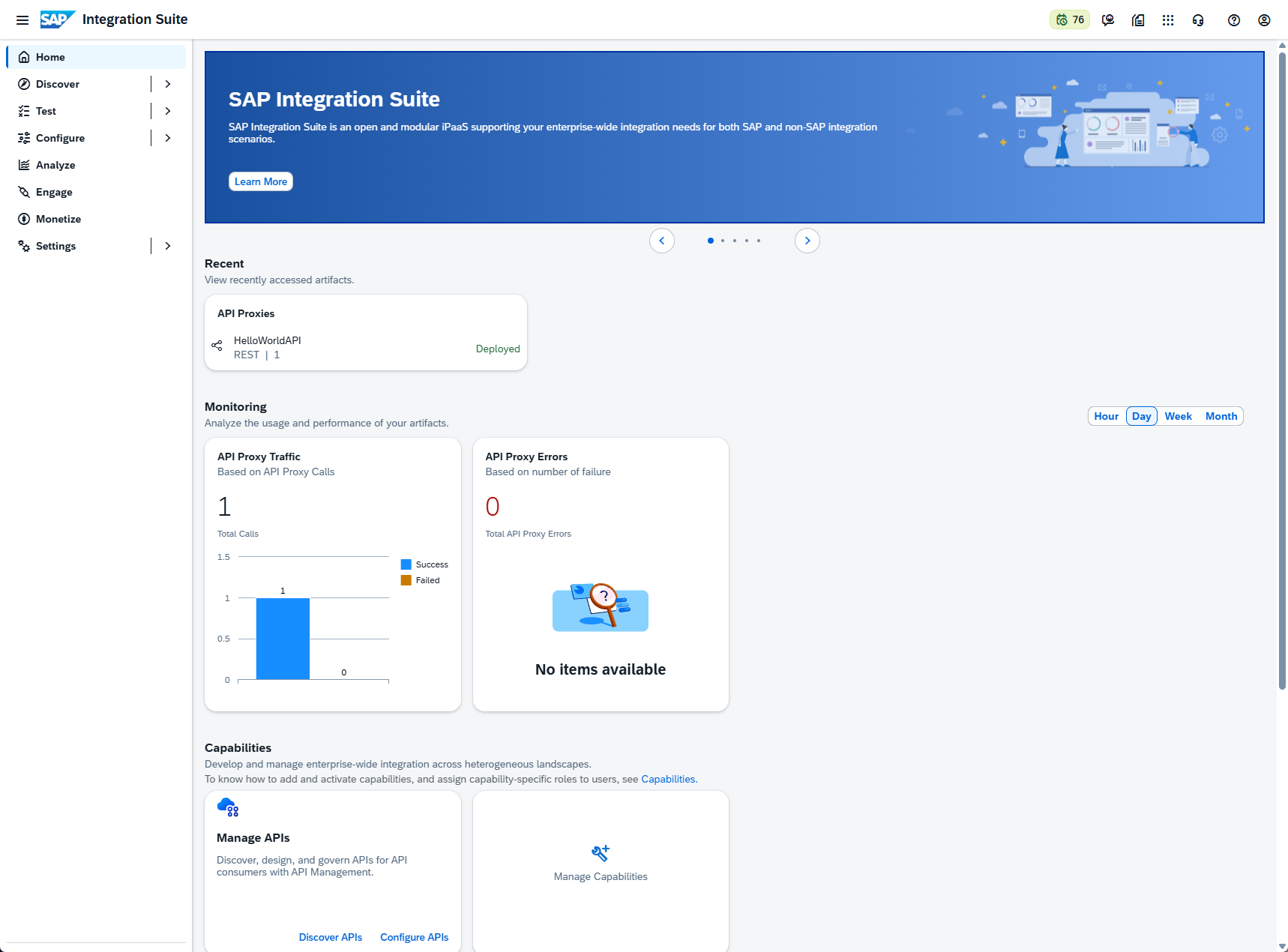 From here we can log out of and then back into the Integration Suite. After doing so, we are presented with a few new options on the dashboard: